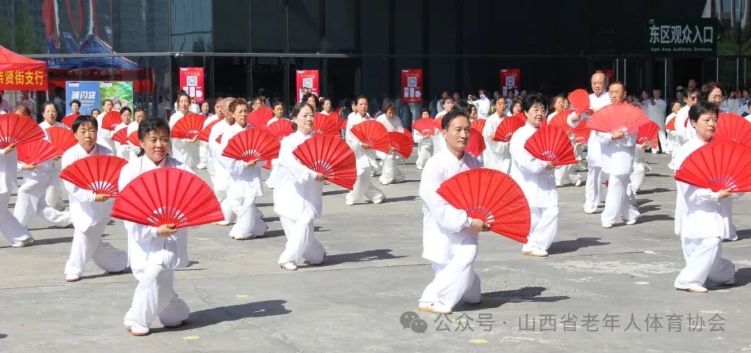 500余名太极拳友集体习练八段锦、齐打太极拳,缓缓的太极起式,动作流畅自然,配合默契,举手投足间绵里藏针、刚柔并济、行云流水,完美地诠释了太极拳的精髓,充分展现了省城老年人参与太极拳健身活动的深厚群众基础。