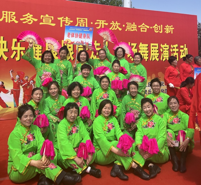 县老体协健身队20名队员展演了健身花戏《打酸枣》,动作跌宕起伏、优美灵活,把左权小花戏舒展、矫健、俊秀的独有特色表演的非常到位,展现出了新时期老年人的精神风貌,赢得了阵阵掌声。(灵丘县老体协 祖新胜)