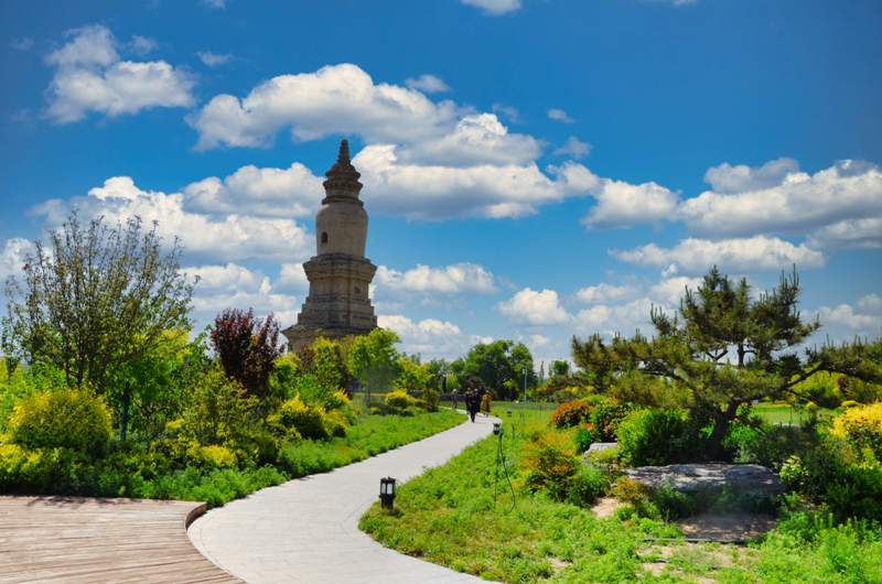 春至万荣,万象争荣,春天的舍利塔景区内,红花绿树,姹紫嫣红,格外妖娆。吸引了许多游客前来观光赏花游览。(摄影 解建国)