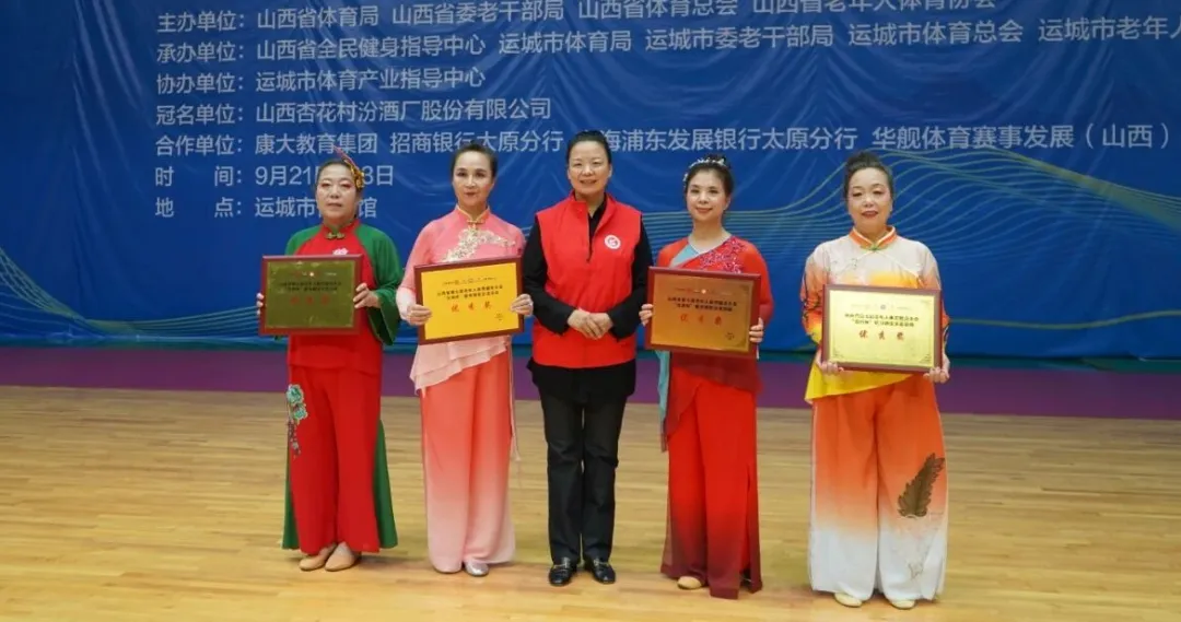 在自选套路比拼中,运城市代表队凭借作品《丰收时节》以9.296分斩获优胜奖第一名;大同市代表队的《沂蒙情》、临汾市代表队的《牧羊情》紧随其后,分别以9.226分、9.136分位列优胜奖第二、三名。规定套路赛场竞争同样激烈,晋城市代表队精准演绎《全国第八套健身秧歌》,以9.200分的优异成绩摘冠;运城市代表队、临汾市代表队分别以9.186分、9.106分获优胜奖第二、三名。值得一提的是,所有参赛代表队均以良好的赛风赛纪展现老年运动员的素养,全部获得“体育道德风尚奖”。